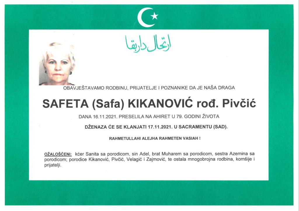 SAFETA (Safa) KIKANOVIĆ rođ. Pivčić