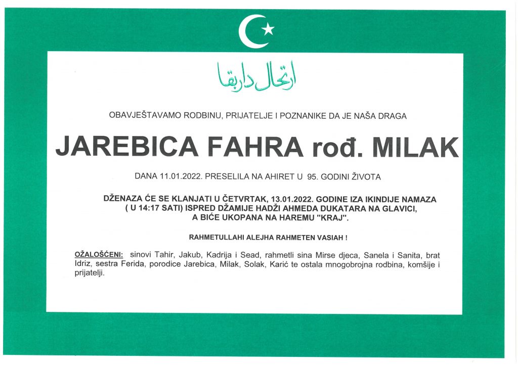 Jarebica Fahra rođ. Milak
